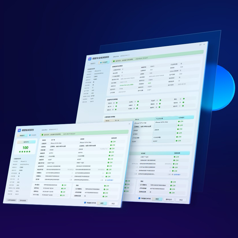 爱思助手搭载智能检测引擎,全面扫描设备硬件参数与软件状态。快速识别改装机、问题部件、维修痕迹等隐藏信息,自动生成详细验机报告,支持一键保存分享。